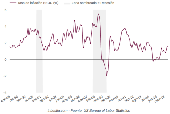 EEUU: Tasa de inflación anual 1,6% en octubre La tasa de inflación anual en Estados Unidos se sitúa en el 1,6% en octubre, una décima superior al mes anterior. La tasa de inflación anual mide la variación... 17 de noviembre, 2016