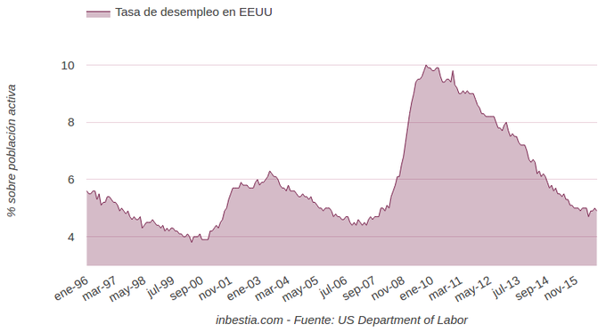 EEUU: Tasa de paro 4,9% en octubre Según los datos del Departamento de Trabajo de Estados Unidos, la tasa de paro descendió una décima hasta el 4,9% en octubre. El desempleo venía cayendo desde 2009 y... 4 de noviembre, 2016