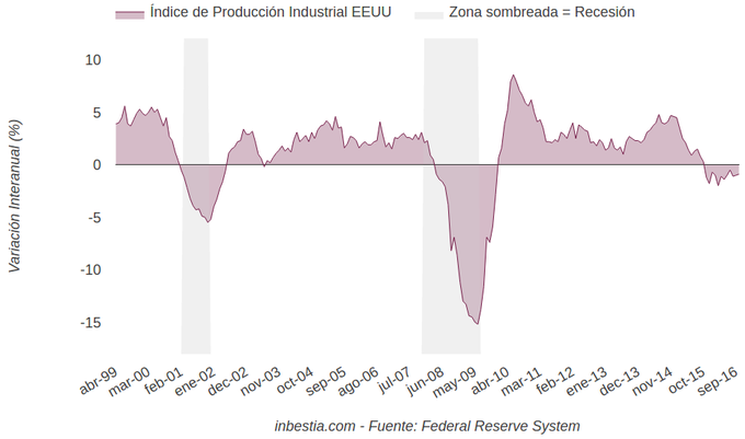 EEUU: Índice de Producción Industrial -0,9% interanual en octubre El índice de producción industrial en EEUU se mantuvo invariable en octubre con respecto al mes anterior, acumulando una caída del 0,9% en los últimos 12 meses. Parece... 16 de noviembre, 2016