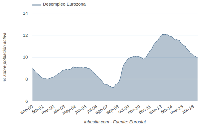 Eurozona: Tasa de paro 10% en septiembre Según Eurostat, la tasa de paro en la zona Euro se situó en el 10% en septiembre de 2016, al mismo nivel que el dato del mes anterior, que ha sido revisado una décima a... 3 de noviembre, 2016