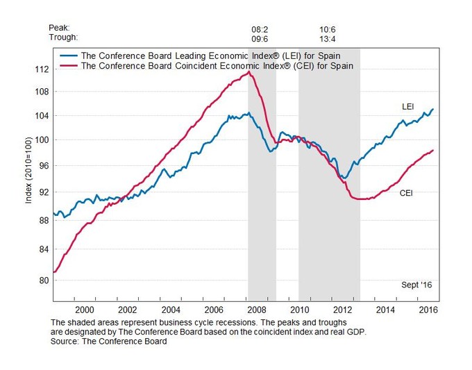 España: indicador líder +0,3% en septiembre El indicador líder o adelantado a la economía española calculado por The Conference Board, repuntó el pasado mes de septiembre tres décimas porcentuales hasta los 105... 10 de noviembre, 2016