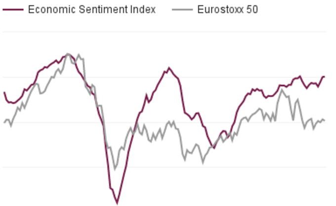 Eurozona: Índice Sentimiento Económico 106,5 en noviembre El índice de sentimiento económico de la Eurozona ascendió en este mes de noviembre hasta los 106,5 puntos. El máximo cíclico se alcanzó en diciembre de 2015 en los... 30 de noviembre, 2016