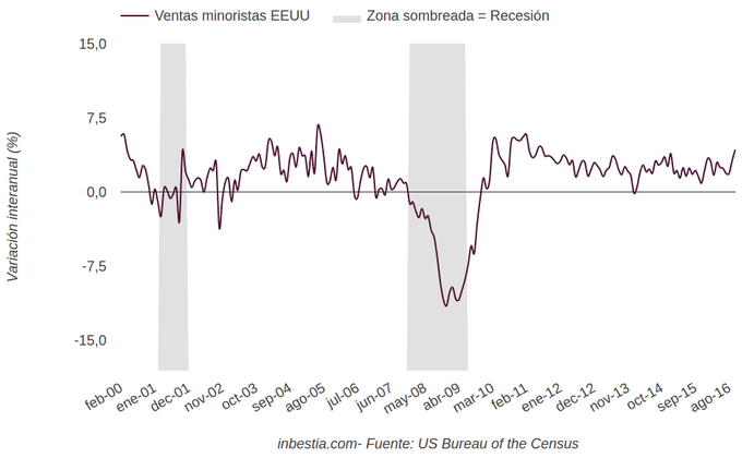EEUU: Ventas minoristas +4,3% interanual en octubre Según el Instituto Nacional de Estadística estadounidense (US Bureau Census), las ventas minoristas aumentaron un 1% en octubre respecto al mes anterior. En... 15 de noviembre, 2016