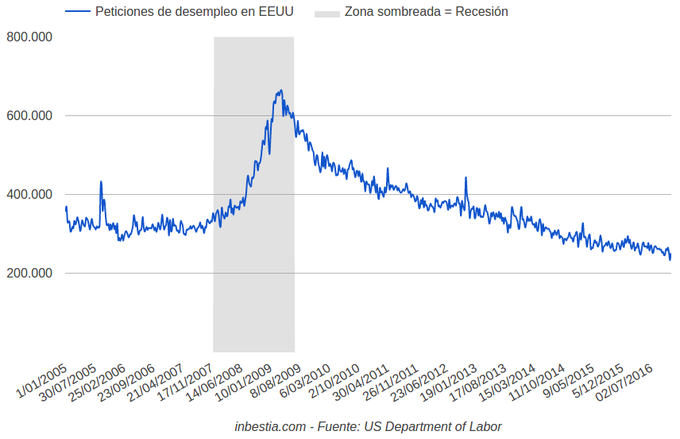 EEUU: Peticiones de paro 265.000 Durante la pasada semana se solicitaron 265.000 nuevos seguros de desempleo en los Estados Unidos, una cifra ligeramente superior a la de la semana anterior. El dato se... 3 de noviembre, 2016