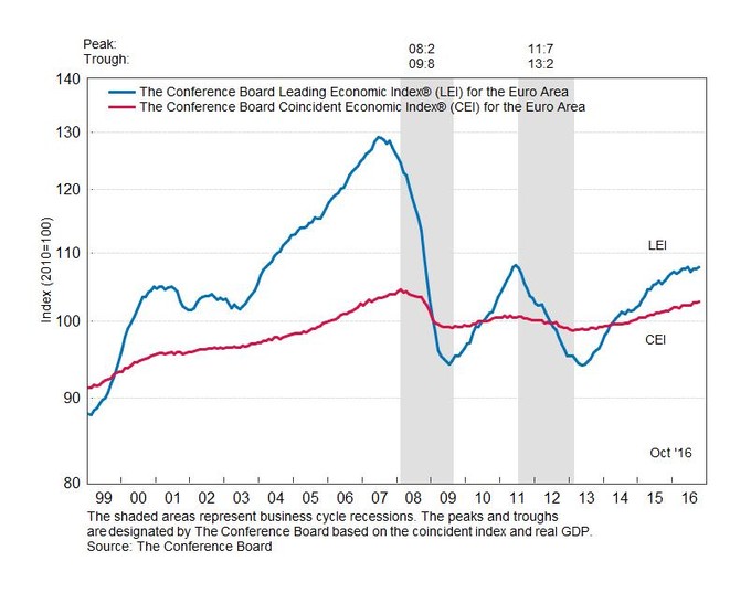 Eurozona: indicador líder +0,3% en octubre El indicador líder o adelantado a la economía de la Eurozona, elaborado por The Conference Board, repuntó tres décimas en octubre con respecto al mes anterior hasta los... 25 de noviembre, 2016