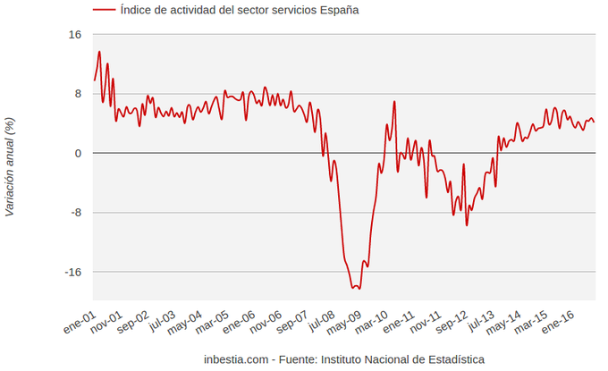 España: Actividad Sector Servicios +4,1% interanual en septiembre Según el Instituto Nacional de Estadística, el índice de actividad del sector servicios aumentó un 0,6% en septiembre respecto al mes anterior. Se trata de un dato... 23 de noviembre, 2016