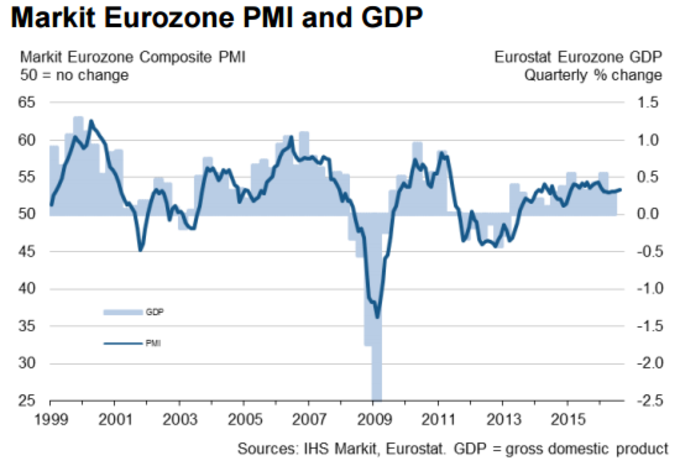 Eurozona: PMI Compuesto Agosto 53,3 El avance estimativo del índice de actividad PMI Compuesto de la Eurozona alcanza un máximo de 7 meses al registrar una lectura de 53,3 puntos, una décima superior a la... 23 de agosto, 2016