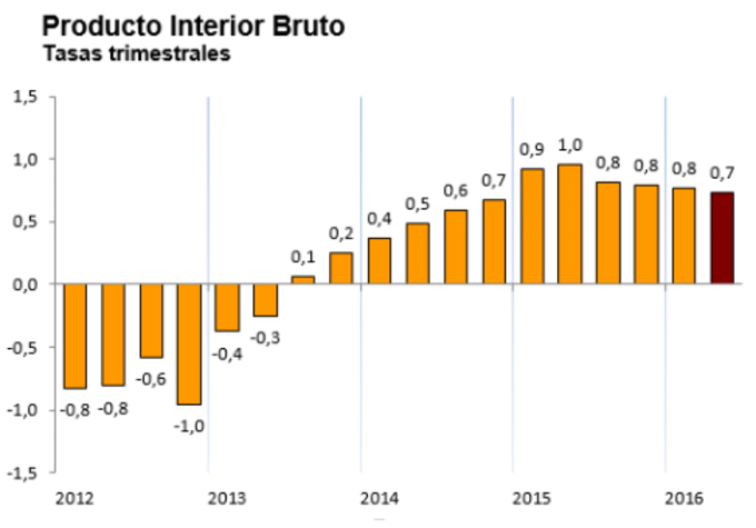 España: Producto Interior Bruto +0,7% en el segundo trimestre El Instituto Nacional de Estadística ha publicado el dato adelantado de crecimiento del Producto Interior Bruto de la economía española del segundo trimestre de 2016,... 29 de julio, 2016
