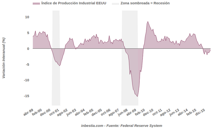 EEUU: Índice de Producción Industrial -0,5% interanual en julio El índice de producción industrial en EEUU aumentó un 0,7% en julio con respecto al mes anterior, acumulando una caída del 0,5% en los últimos 12 meses. Parece que... 16 de agosto, 2016