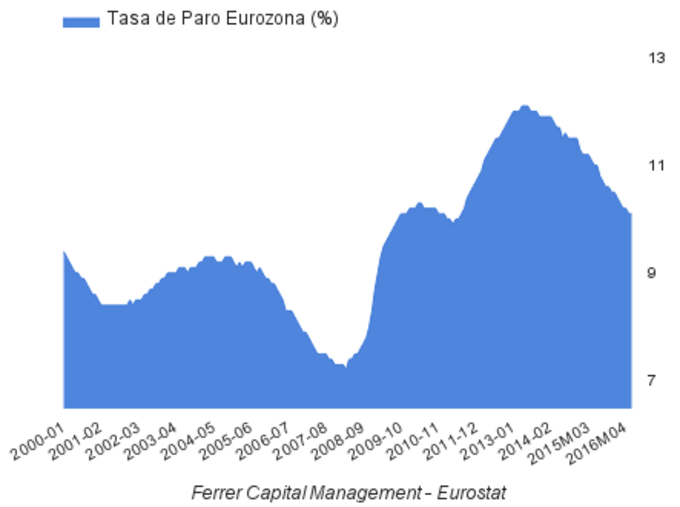 Eurozona: tasa de paro 10,1% La tasa de paro en la Eurozona se mantuvo en junio al mismo nivel que en el mes de mayo, el 10,1%. Se trata de la cifra más baja desde junio de 2011 y por debajo del... 29 de julio, 2016