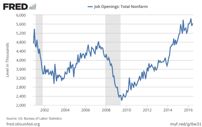 EEUU: 5.624.000 vacantes laborales en junio Según del Departamento de Trabajo de Estados Unidos, el número total de vacantes laborales o puestos de trabajo sin cubrir ascendió hasta los 5.624.000 en junio. Se... 11 de agosto, 2016