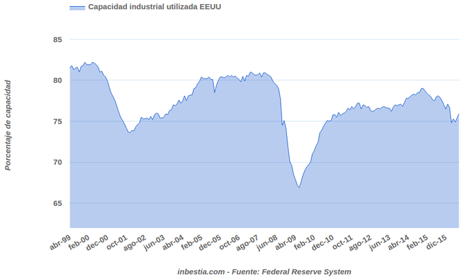 EEUU: Capacidad industrial utilizada 75,9% en julio Según la Reserva Federal, el porcentaje de capacidad industrial utilizada en julio fue del 75,9%, cuatro décimas por encima del mes anterior y décimas superior al... 16 de agosto, 2016