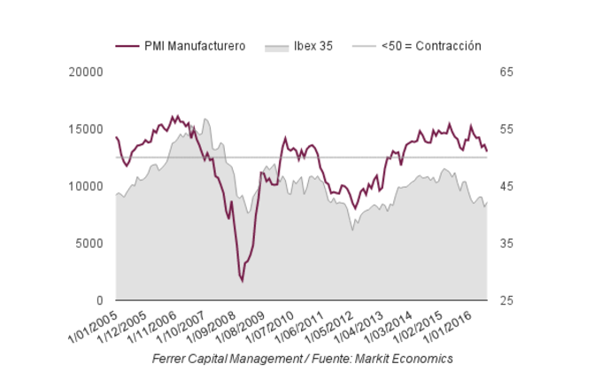 España: PMI Manufacturero 51 Julio El indicador de difusión elaborado por Markit Economics sobre la evolución del sector industrial de la economía española, declinó en julio hasta el 51% desde el 52,2%... 1 de agosto, 2016