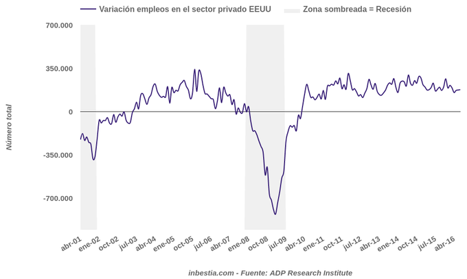 EEUU: +179.000 empleos en el sector privado en julio La economía norteamericana creó 179.000 empleos en el sector privado durante el mes de julio, según la entidad privada Automatic Data Processing. Este dato se encuentra... 3 de agosto, 2016