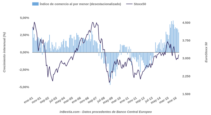 Eurozona: Índice de comercio al por menor +2,88% interanual en abril Según los datos procedentes del Banco Central Europeo, el volumen del comercio al por menor creció un 2,88% interanual en abril en la zona euro. En los últimos meses el... 3 de junio, 2016
