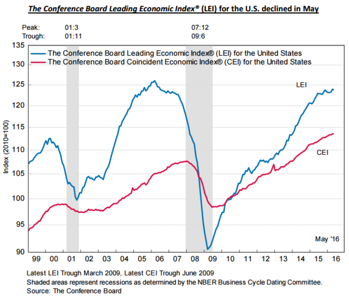 EEUU: Indicador Líder -0,2% en Mayo El índice adelantado al ciclo económico elaborado por The Conference Board, descendió en mayo hasta los 123,7 puntos, un 0,2% menos que el mes de abril. El número... 23 de junio, 2016