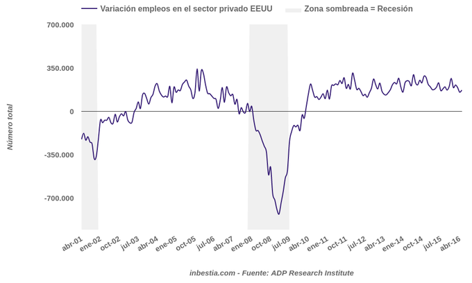 EEUU: +173.000 empleos en el sector privado en mayo La economía norteamericana creó 173.000 empleos en el sector privado durante el mes de mayo, según la entidad privada Automatic Data Processing. Este dato se encuentra... 2 de junio, 2016