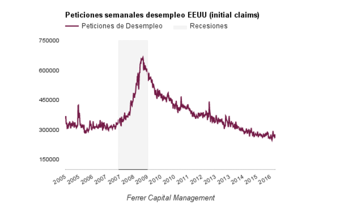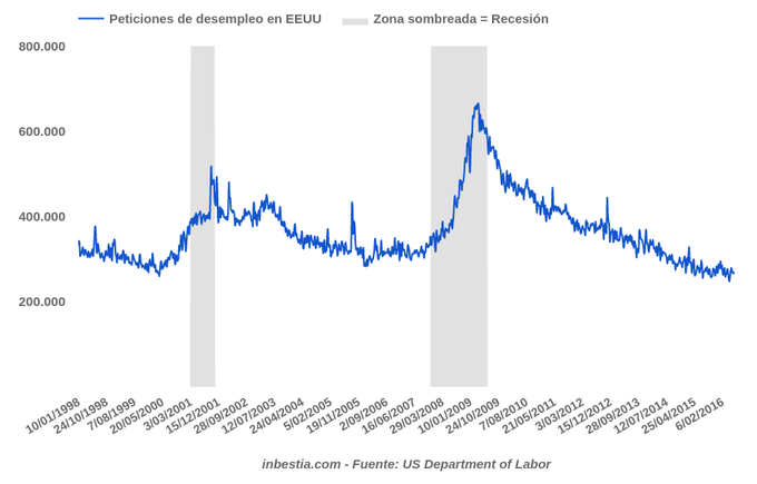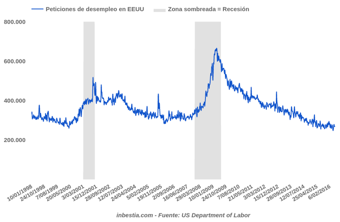 EEUU: Peticiones de paro 277.000 Durante la pasada semana se solicitaron 277.000 nuevos seguros de desempleo en los Estados Unidos, una cifra inferior a la de la semana anterior de 264.000. En los últimos... 16 de junio, 2016