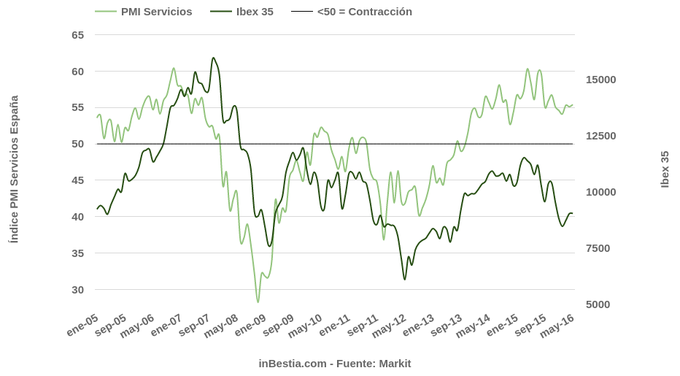 España: Índice Servicios PMI 55,4 en mayo Según Markit, la actividad del sector servicios se aceleró en España, pasando de un nivel en el Índice PMI Servicios de 55,1 en abril a 55,4 en mayo. Se trata de un dato... 3 de junio, 2016