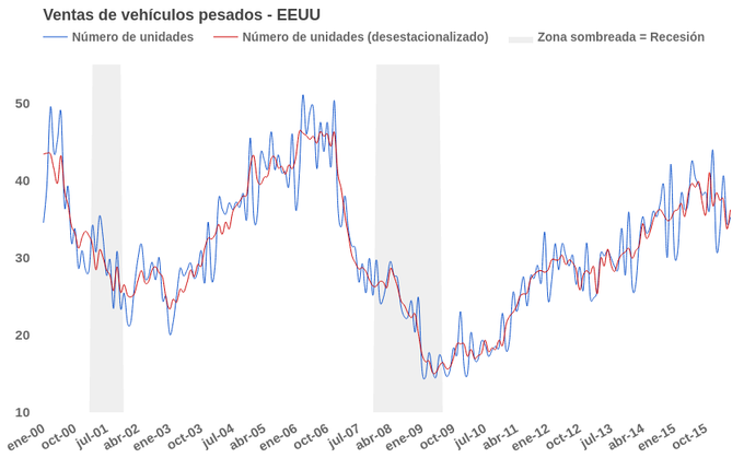 EEUU: Venta de vehículos pesados 36.200 unidades en mayo Los datos de ventas de vehículos pesados en Estados Unidos fueron de 35.200 unidades en mayo, tratándose de un dato sin corregir a efectos estacionales. Comparando... 9 de junio, 2016