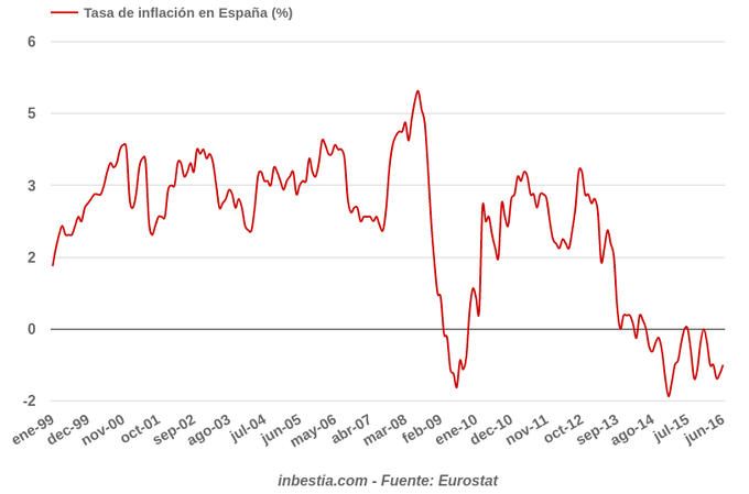 España: Tasa de inflación -1% en mayo El Instituto Nacional de Estadística ha confirmado el dato adelantado de inflación que se sitúa definitivamente en el -1% interanual en mayo. Este dato está una... 14 de junio, 2016