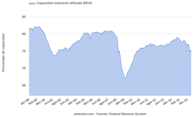 EEUU: Capacidad industrial utilizada 74,9% en mayo Según la Reserva Federal, el porcentaje de capacidad industrial utilizada en mayo fue del 74,9%, cuatro décimas por debajo del mes anterior y 1,7 puntos porcentuales... 15 de junio, 2016