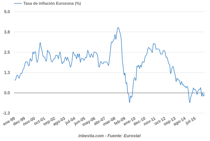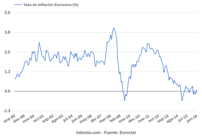 Eurozona: Tasa de inflación -0,1% en mayo Según Eurostat, el dato de inflación en la zona euro es del -0,1% en mayo, una décima por encima del dato del mes anterior. La inflación sigue en terreno negativo... 16 de junio, 2016