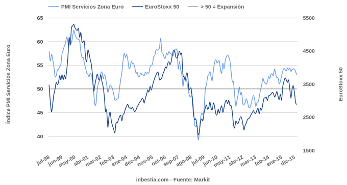 Eurozona: Flash PMI Servicios 53 en febrero Según Markit, el dato adelantado de la actividad del sector servicios en la zona euro se desaceleró en el último mes, pasando de de 53,6 en enero a 53 en febrero. Hay que... 22 de febrero, 2016