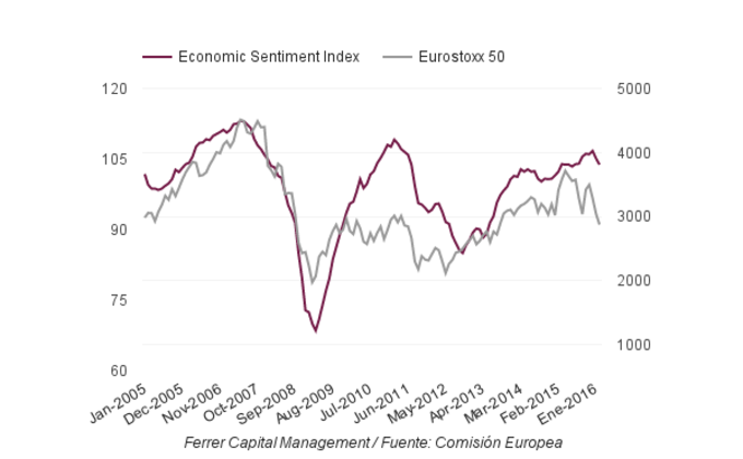 Eurozona: Índice Sentimiento Económico 103,8 puntos El índice de sentimiento económico de la Eurozona descendió en febrero hasta los 103,8 puntos, desde los máximos cíclicos del pasado mes de diciembre (106,7 puntos). Se... 26 de febrero, 2016