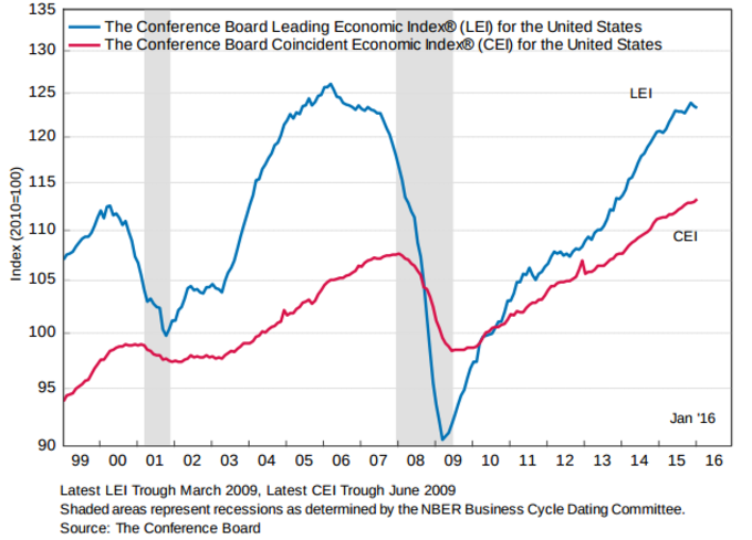 EEUU: Indicador líder (LEI) -0,2% en enero El Índicador Líder (LEI) elaborado por The Conference Board descendió un 0,2% en enero, y en los últimos seis meses creció un 0,3%, con lo que se aún se mantiene en... 18 de febrero, 2016