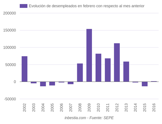 España: el paro sube en 2.231 personas en febrero Según datos del Servicio Público de Empleo Estatal, el número de parados aumentó en 2.231 personas en el mes de febrero con respecto al mes anterior. Tras varios datos... 2 de marzo, 2016