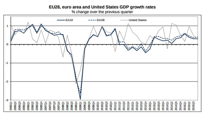 Eurozona: Producto Interior Bruto +0,3% en el cuarto trimestre Según los datos de Eurostat, el PIB del conjunto de la zona euro creció un 0,3% en el cuarto trimestre frente al anterior y un 1,6% en el total del año. Así mismo,... 8 de marzo, 2016