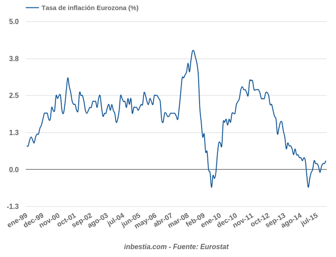 Eurozona: Tasa de inflación +0,3% en enero Según Eurostat, el dato de inflación en la zona euro es del 0,3% en enero, una décima superior al de diciembre. Parece que la inflación abandona el terreno negativo... 25 de febrero, 2016