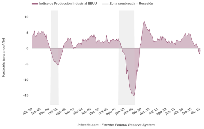 EEUU: Índice de Producción Industrial -0,7% interanual en enero El índice de producción industrial en EEUU aumentó un 0,9% en enero con respecto al mes anterior, acumulando una caída del 0,7% en los últimos 12 meses. Este... 17 de febrero, 2016