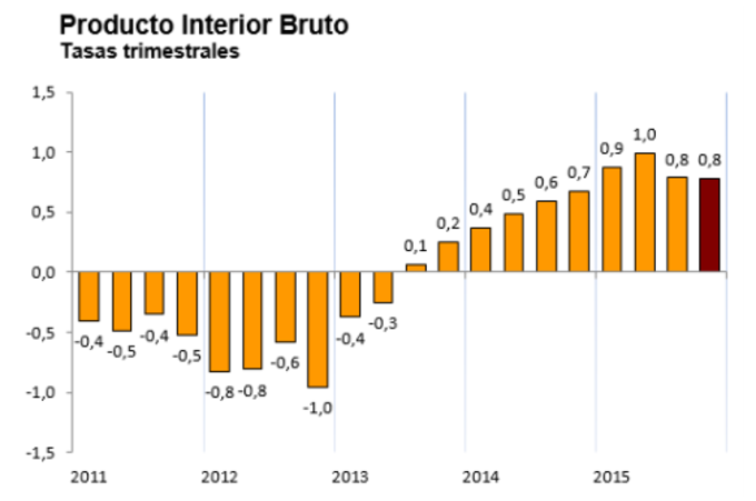 España: Producto Interior Bruto +0,8% en el cuarto trimestre El Instituto Nacional de Estadística ha confirmado el dato de crecimiento del Producto Interior Bruto de la economía española, que se sitúa en el 0,8% en el... 25 de febrero, 2016