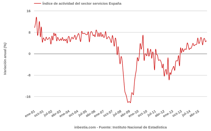 España: Actividad Sector Servicios +4,9% interanual en diciembre Según el Instituto Nacional de Estadística, el índice de actividad del sector servicios aumentó un 0,5% en diciembre con respecto al mes anterior. Se trata de un dato... 19 de febrero, 2016