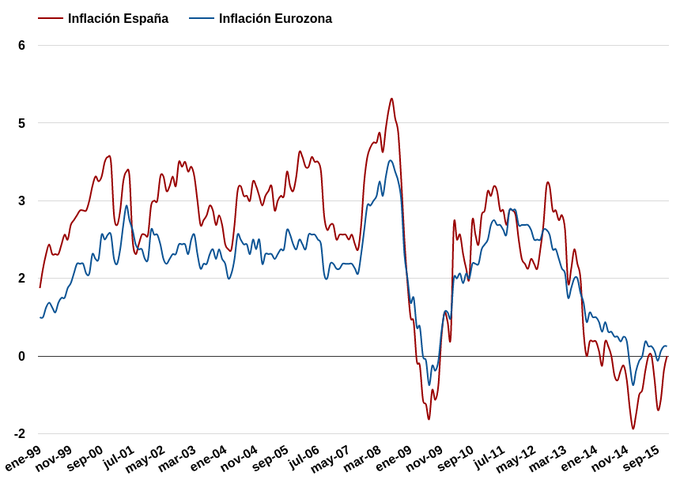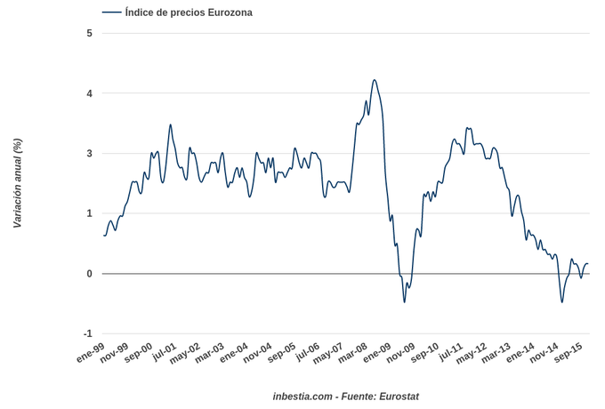 Eurozona: Indicador adelantado de inflación +0,2% Según Eurostat, el dato adelantado de diciembre señala que la inflación anual en la Eurozona se situó en el 0,2%, al mismo nivel que en noviembre. A continuación... 5 de enero, 2016
