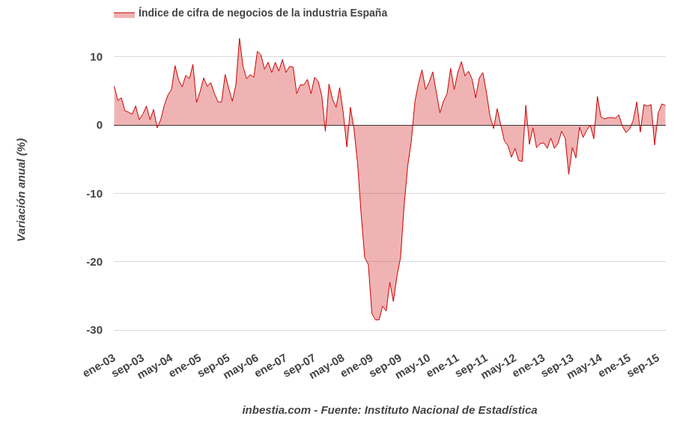 España: Cifra de negocios de la industria +2,9% interanual Según el Instituto Nacional de Estadística, el índice de cifra de negocios de la industria en España bajó un 0,2% en noviembre con respecto a octubre. Se trata de un... 21 de enero, 2016