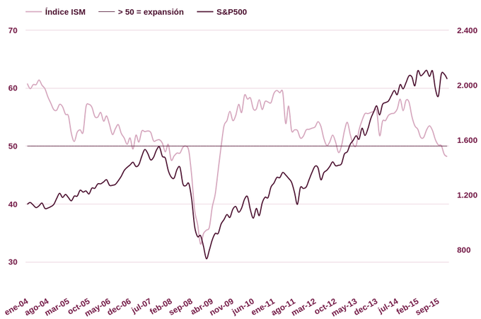 EEUU: Índice ISM Manufacturero 48,2 El indicador ISM Manufacturero continuó descendiendo en diciembre alcanzando 48,2, cuatro décimas menos que en noviembre. Hay que recordar que por encima de 50... 4 de enero, 2016