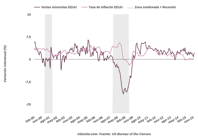 EEUU: Ventas minoristas +2,2% interanual en diciembre Según el Instituto Nacional de Estadística estadounidense (US Bureau Census), las ventas minoristas descendieron un 0,1% en diciembre respecto al mes anterior. En cuanto a... 15 de enero, 2016