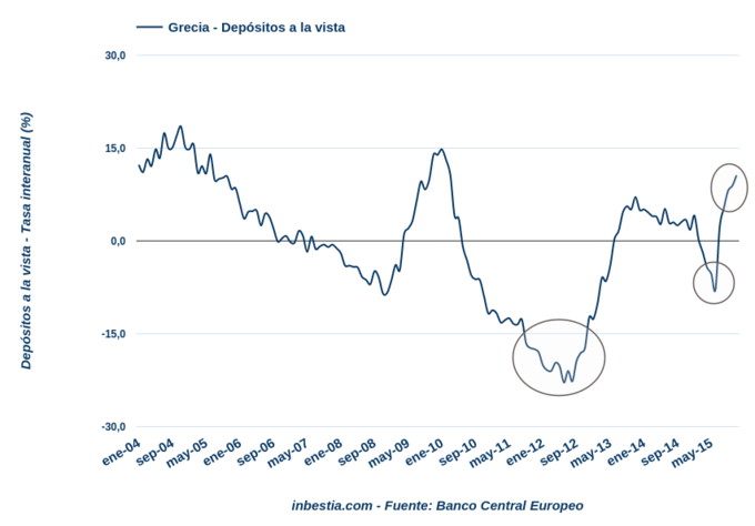 Grecia: Depósitos a la vista +10,6% Según datos del Banco Central Europeo, el agregado de depósitos en Grecia ha pasado de contraerse fuertemente el 7,9% en julio a expandirse al 10,6% en noviembre.... 31 de diciembre, 2015