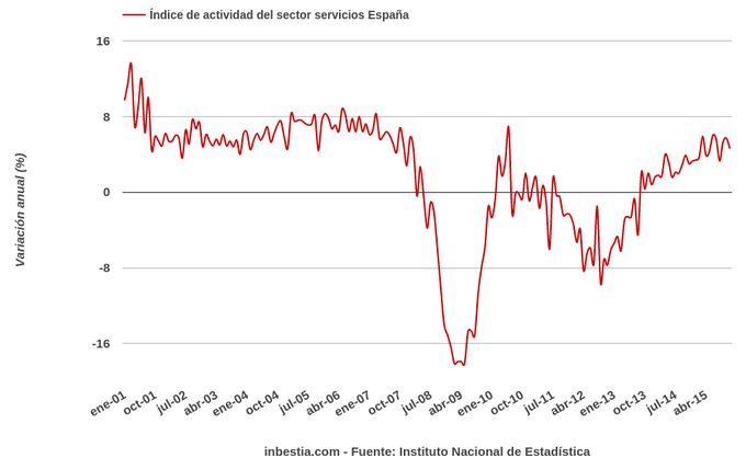 España: Actividad Sector Servicios +4,6% interanual Según el Instituto Nacional de Estadística, el índice de actividad del sector servicios cayó un 0,7% en noviembre con respecto a octubre. Se trata de un dato corregido a... 21 de enero, 2016