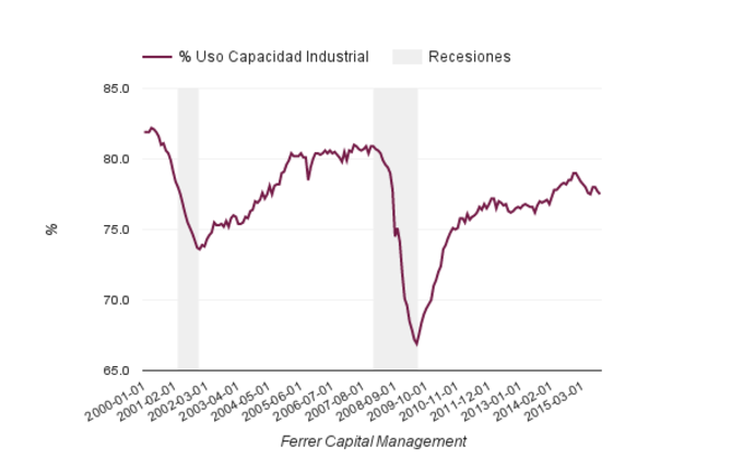 EEUU: uso capacidad industrial 77,5% octubre El uso del total de la capacidad industrial declinó hasta el 77,5% en el mes de octubre. Se trata de la cifra más débil desde el mes de junio de este mismo... 17 de noviembre, 2015
