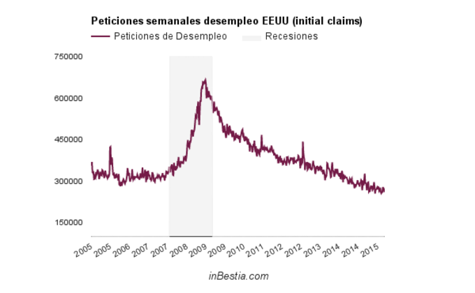 EEUU: 276.000 peticiones de paro Durante la pasada semana se solicitaron 276.000 nuevos seguros de desempleo en los Estados Unidos, una cifra sin cambios con respecto a la semana anterior y un 5,48%... 12 de noviembre, 2015