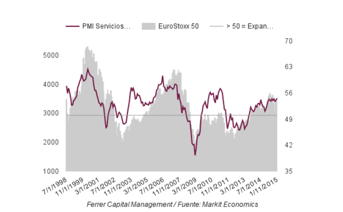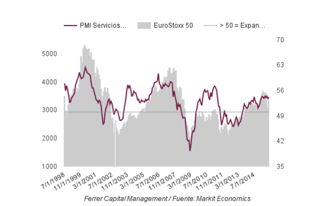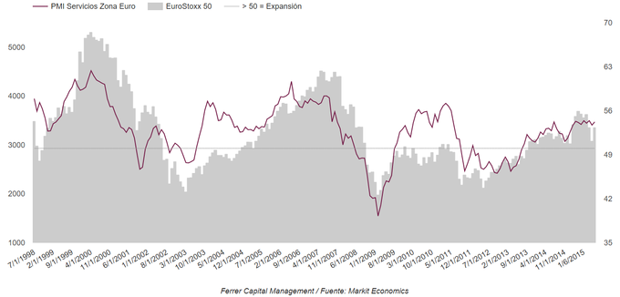 Eurozona: PMI Servicios 54,1 Octubre El dato de actividad en el sector servicios de la Eurozona, el indicador PMI Servicios, mostró que la actividad siguió expandiéndose en el mes de octubre al reflejar una... 4 de noviembre, 2015