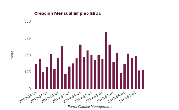 EEUU: 142.000 empleos creados en septiembre La economía norteamericana creó 142.000 empleos en septiembre, por debajo de la expectativa media de 200.000. El mes de agosto fue revisado a la baja, desde 173.000 hasta... 2 de octubre, 2015
