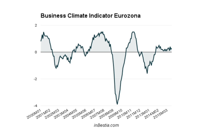 Eurozona: Business Climate Indicator 0,3 septiembre Según Eurostat, el Business Climate Indicator, la encuesta realizada sobre la situación del sector industrial en la Eurozona, descendió en septiembre hasta los 0,3... 29 de septiembre, 2015