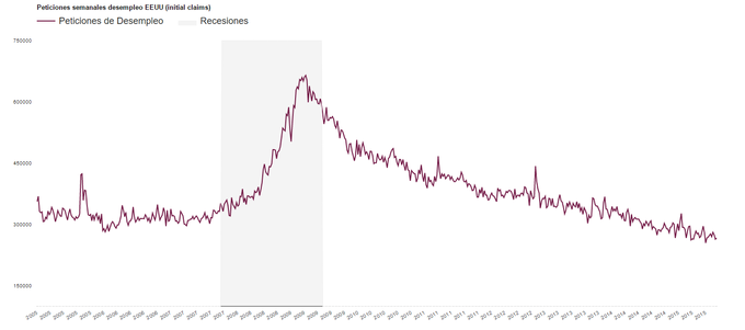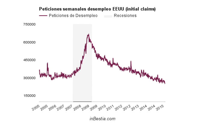 EEUU: 255.000 peticiones de paro Durante la pasada semana se solicitaron 255.000 seguros de desempleo en los Estados Unidos, una de las cifras más bajas del actual ciclo expansivo de la economía... 15 de octubre, 2015