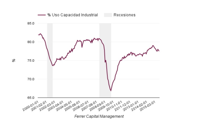 EEUU: Uso capacidad industrial 77,5% en septiembre El uso del total de la capacidad industrial de los Estados Unidos declinó tres décimas en septiembre hasta el 77,5%, el menor uso desde junio de este mismo... 16 de octubre, 2015