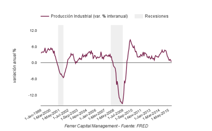 EEUU: producción industrial -0,2% septiembre El nivel de producción industrial se redujo dos décimas en el mes de septiembre con respecto a agosto, en línea con lo esperado por el consenso. La evolución interanual... 16 de octubre, 2015